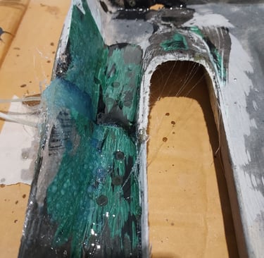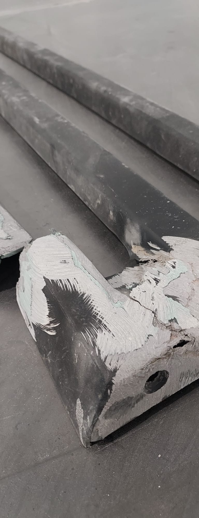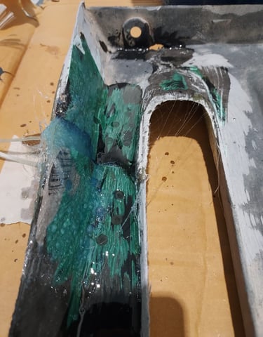 En Reforzado con Fibra hemos recibido un paragolpes de vehículo fabricado en polipropileno, un material poco compatible con las resinas y fibras que usamos habitualmente. Tras estudiar su estado, procedimos a limpiar y lijar la superficie para mejorar el anclaje. Reforzamos la unión mediante perforaciones estratégicas, creando entrelazados con hilo de roving de 800 g para formar una estructura tipo “grapa”. Además, realizamos cortes en forma de canal para generar un agarre mecánico más seguro entre ambas caras. Un trabajo técnico para dar solución a un material desafiante.