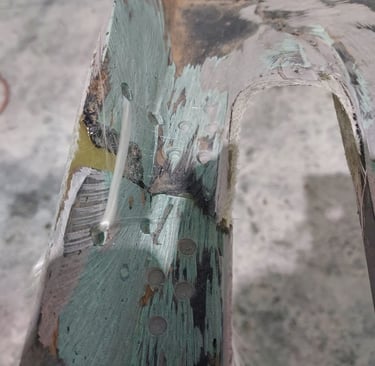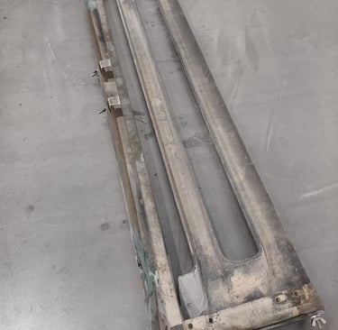 Se realizó un replanteo completo de la pieza, compuesta por varias partes fracturadas. Analizamos su viabilidad, organizamos cada fragmento según su posición original y marcamos los puntos clave para garantizar un ensamblaje correcto antes de iniciar la reparación.